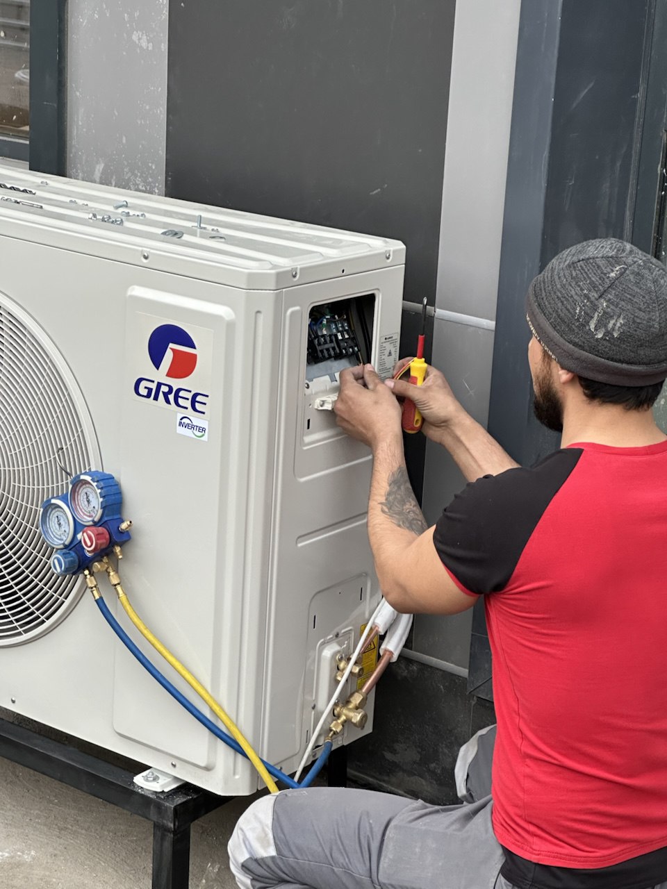 Очистка фильтров, проверка соединений, диагностика хладагента и состояния основных компонентов системы.